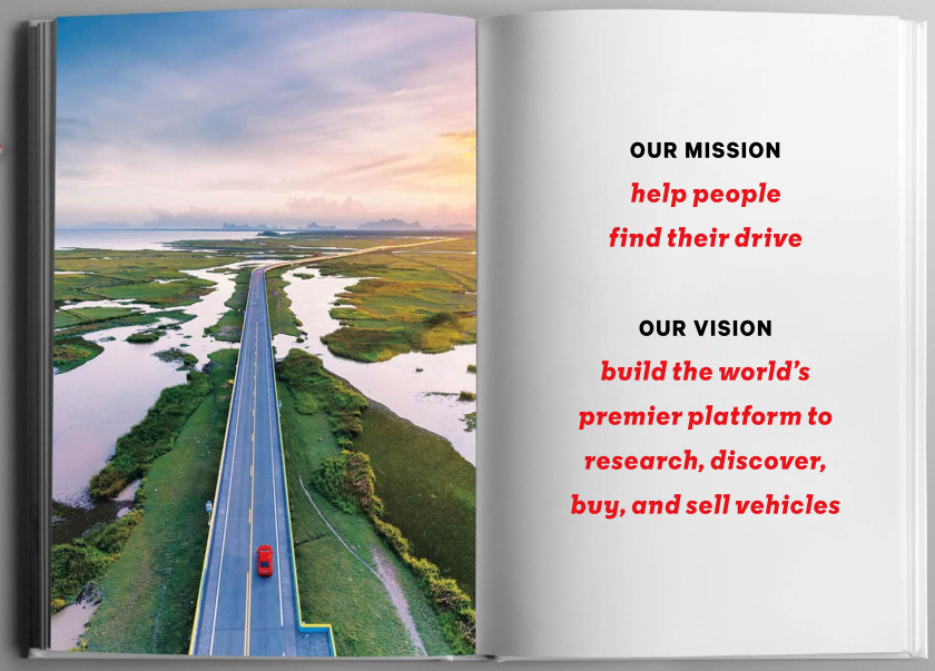VISION은 차를 검색하고 구매하고 판매하는 세계 최고의 PLATFORM 회사로 거듭나는 것이다.