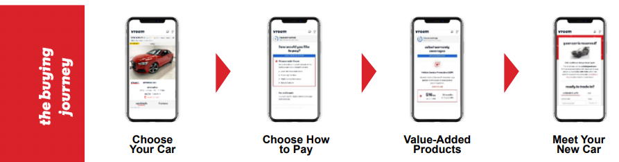 브룸(Vroom)의 전자 상거래 플랫폼은 크게 3가지로 나눌 수 있다.