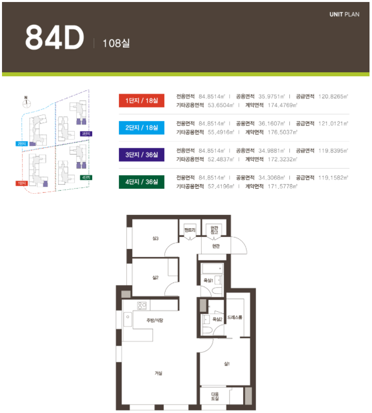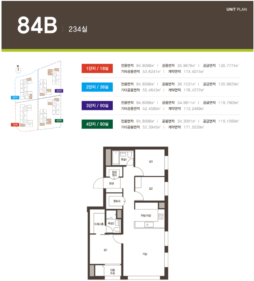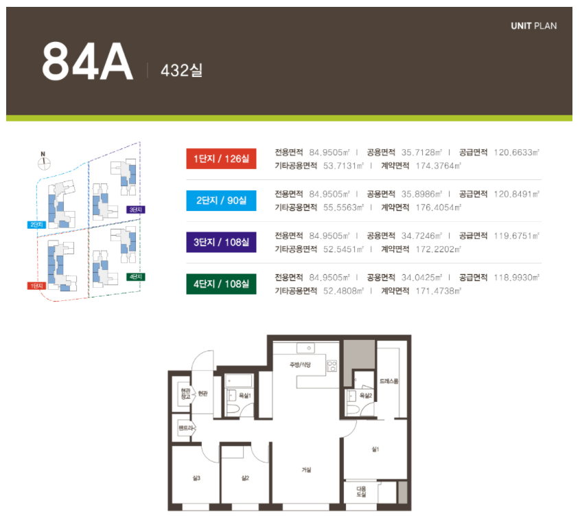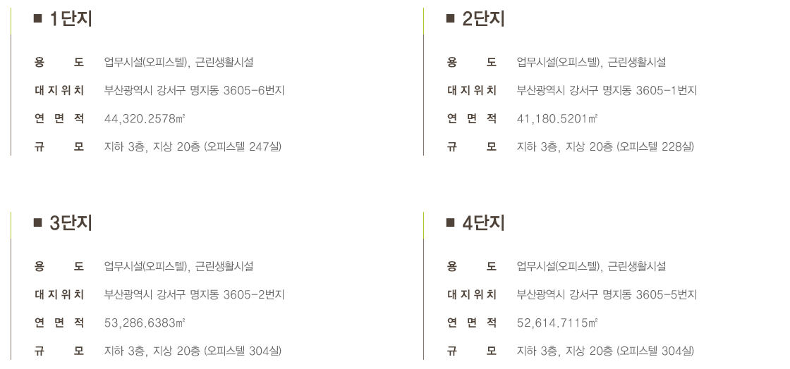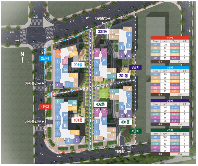 1단지 247실, 2단지 228실, 3단지 304실, 4단지 304실