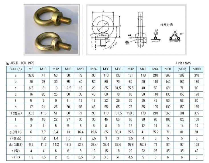 2. 아이 볼트 규격