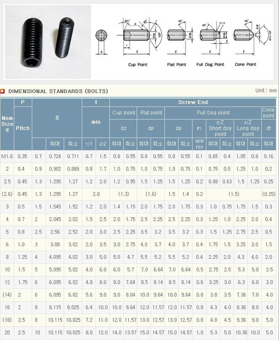 3. 무두 볼트 규격 표