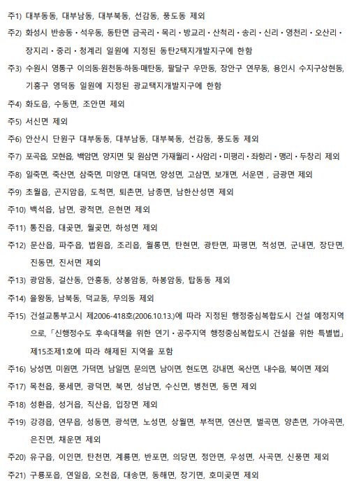 조정대상지역 : 안산 단우너구 대부동동, 대부남동, 대부북동, 선감동, 풍도동, 화성 서신면