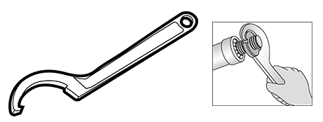 훅 스패너(렌치)란 홈이나 핀 홀에 죠를 넣고 지렛대의 원리를 이용하여 체결하는 공구이다.